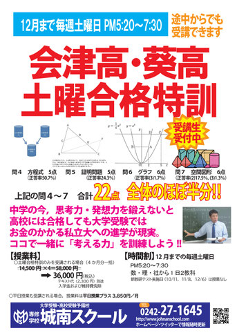 ※中3 希望者のみ(有料) 会津・葵など進学校を目指す生徒対象。高得点を取るため