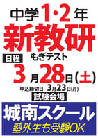 ①1/31(土) 中3生 新教研もぎテスト最終回 申込締切1/26(月)