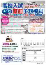 ②2/14(土) 中3生 入試直前 予想模試 申込締切2/12(木)