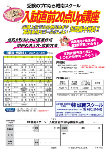中3生 入試直前20点up講座