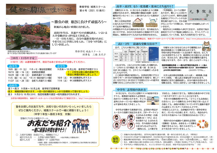 春・夏・秋・冬の年4回発行を目指して、タイムリーに城南スクールの情報を発信します。
