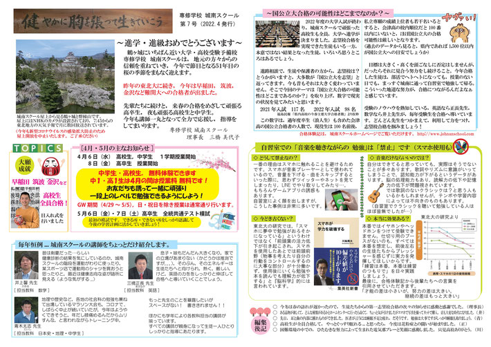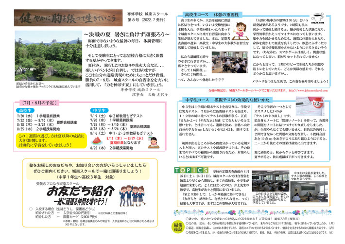 「城南スクールってどんな予備校なんだろう?」という方は、ぜひ第1号からお読みください。